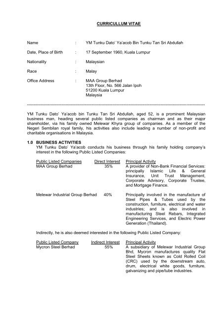 Ym Tunku Dato Ya Acob Maakl Mutual Bhd