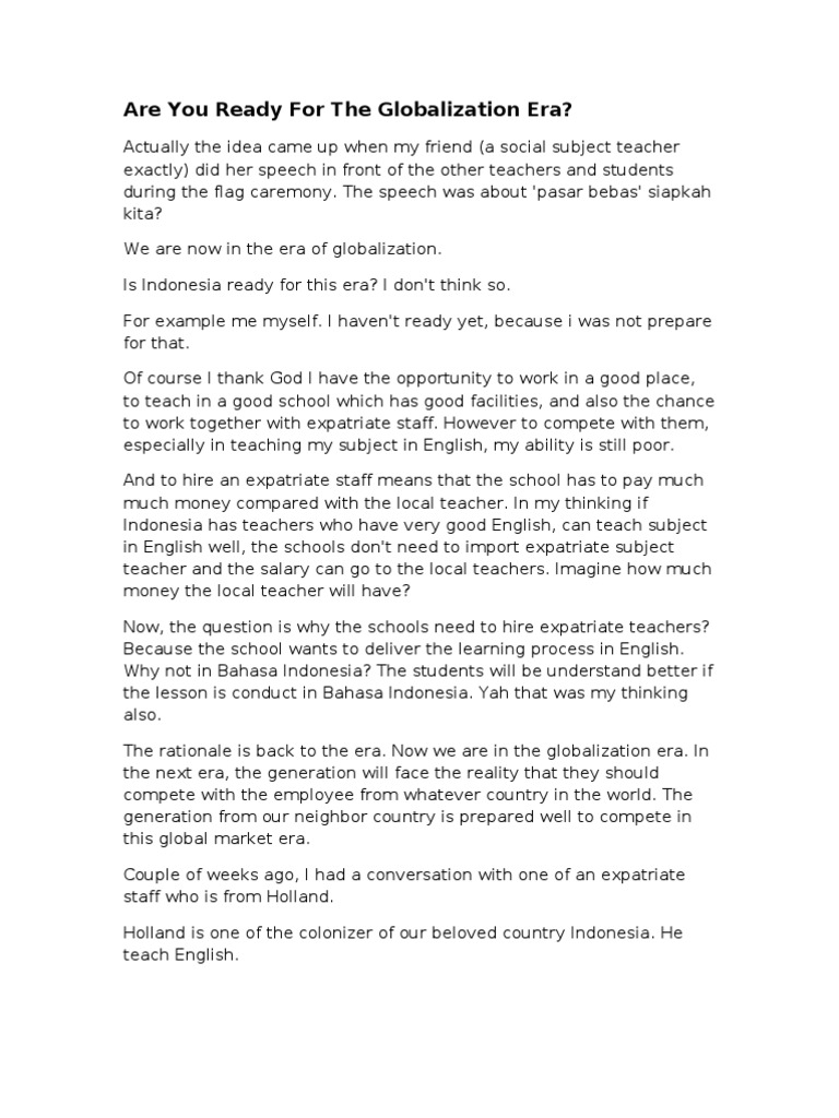 Are You Ready For The Globalization Era Pdf Indonesian Language Teachers